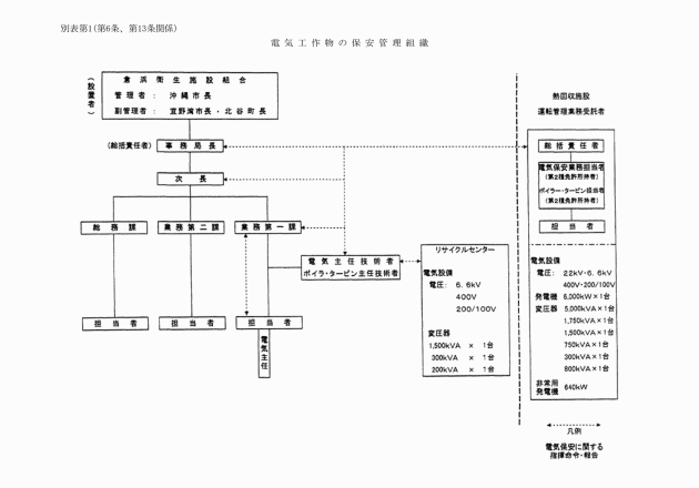 第6条 電気工作物の保安管理業務組織は、別表第1に定めるとおりとする。