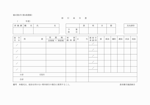 第1条 この規則は、倉浜衛生施設組合職員等の旅費に関する条例(平成7年倉浜衛生施設組合条例第3号。以下「条例」という。)の施行に関し必要な事項を定めるものとする。